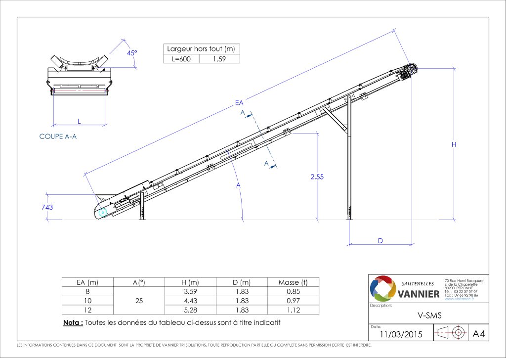 Élévateur fixe de reprise Largeur et longueur sur demande